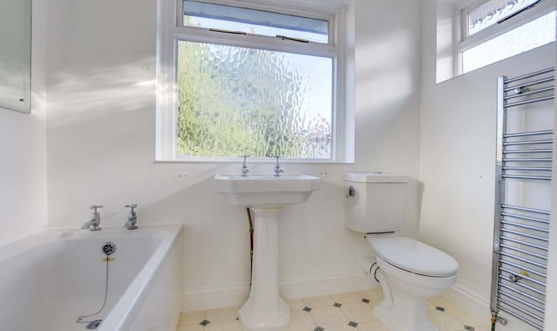 With double glazed window to the rear elevation, window to the side elevation, bath with shower over, low-level WC, wash hand basin, heated towel rail.