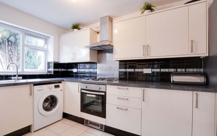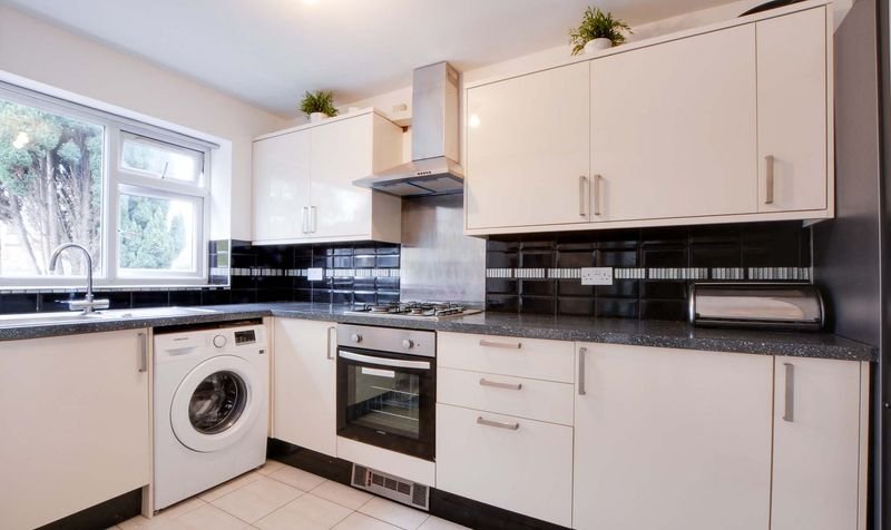 With double glazed window to the front elevation, ceramic tiled flooring, a range of gloss base and wall units, rolled edge lamited work surface, stainless steel sink drainer and mixer tap. Integrated appliances include an inset four ring gas hob, extractor, oven, There is also plumbing and space for a washing machine and a feature chrome ladder radiator.