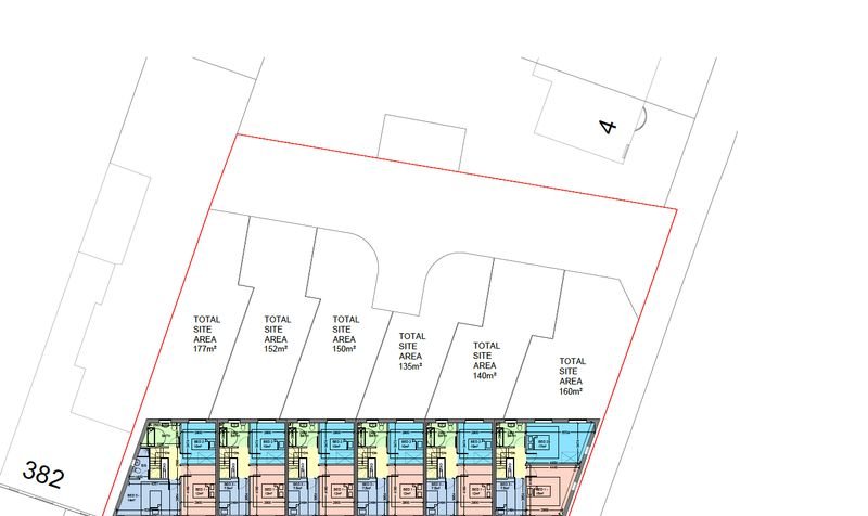 Four town houses with three bedrooms and two end-plot town houses with four bedrooms.
