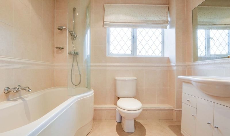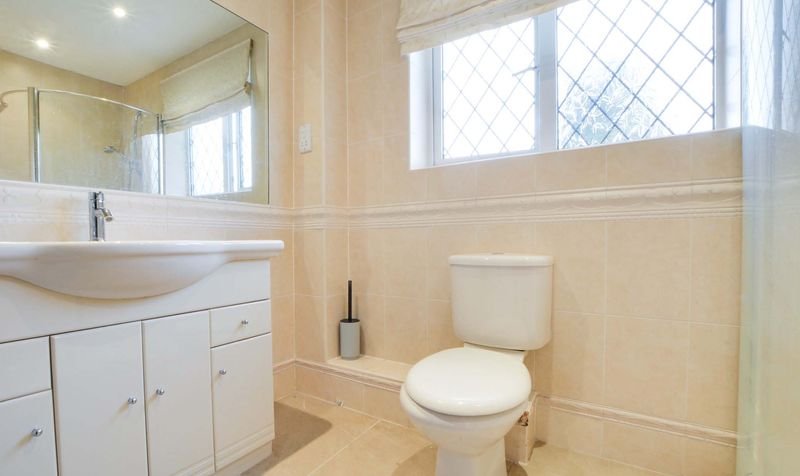 Obscured double glazed window to rear elevation, low level WC, wash hand basin, tiled splash backs, and radiator.