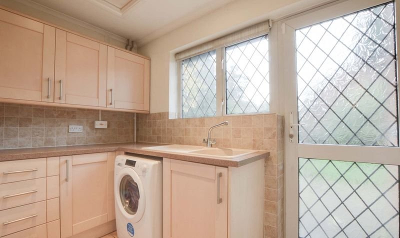 With uPVC double glazed window to the rear elevation, uPVC double glazed door leading out to the rear garden, ceramic tiled flooring, a range of base and wall units accompanied by Corian work surfaces, inset sink, drainer, and mixer tap, tiled splash backs, plumbing for a washing machine, wall-mounted feature radiator.