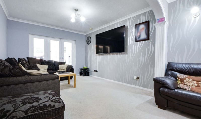 With double glazed bay window to the front elevation, door leading to the fitted dining kitchen, ceiling coving, TV point, radiator.