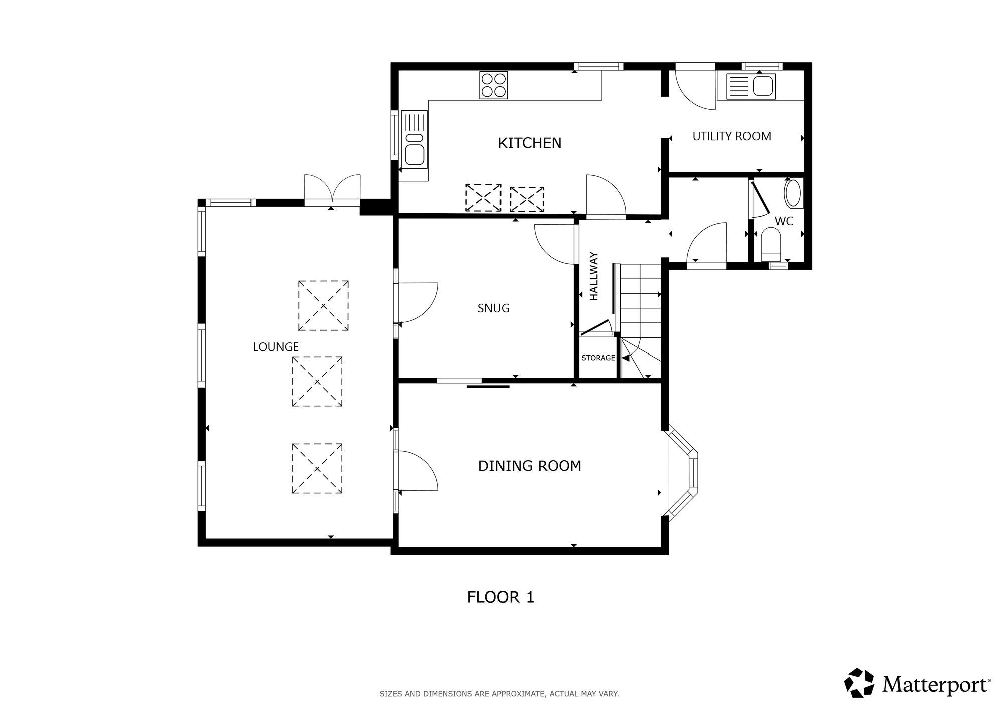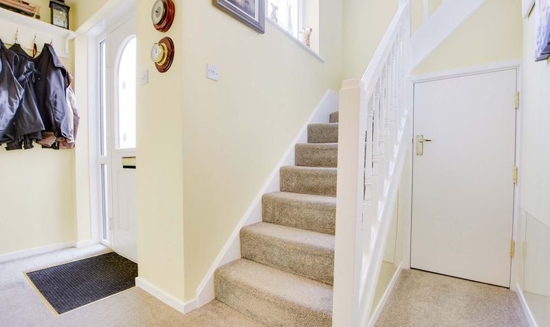 With double glazed window and door to the front elevation, carpet floor, stairs to first floor, under stairs storage, radiator.