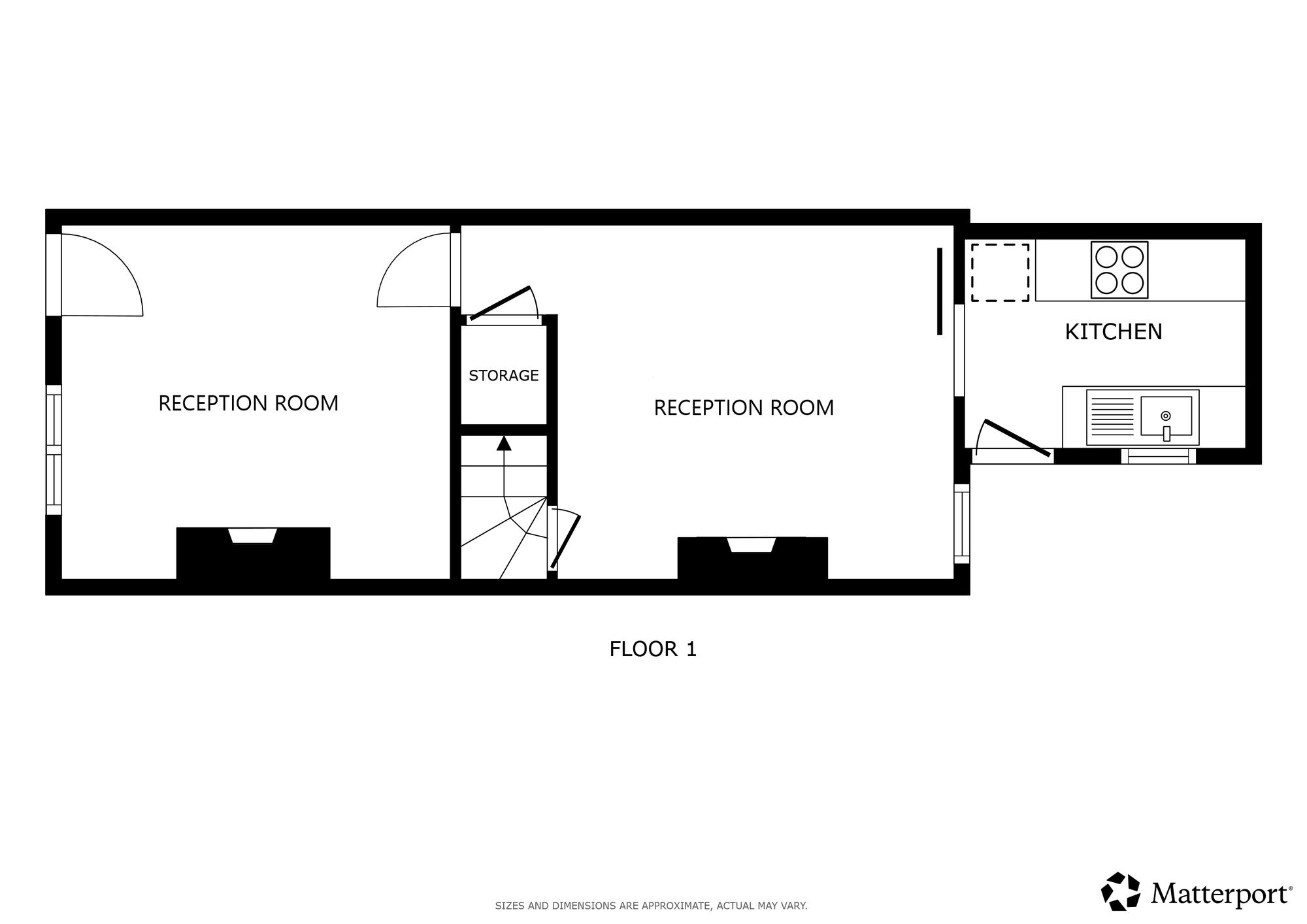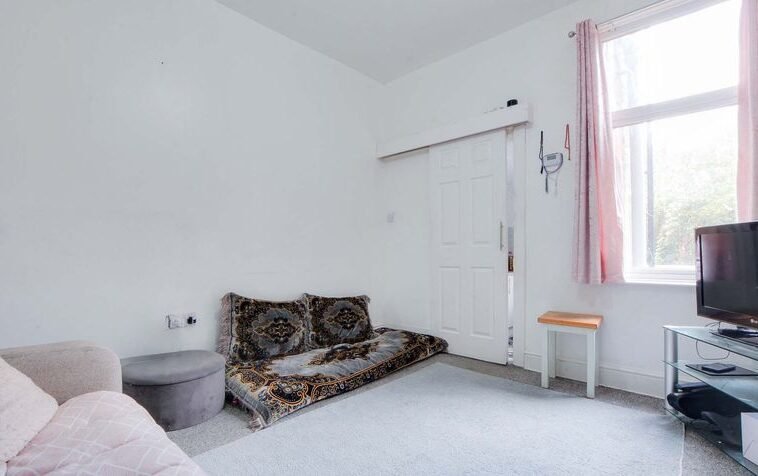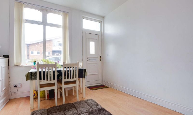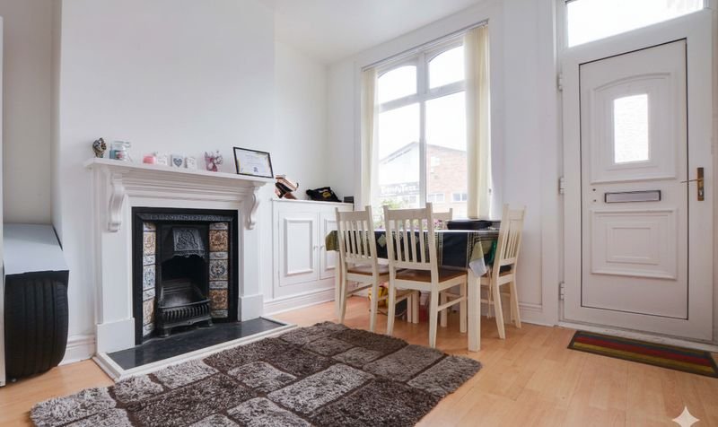 With double glazed window to the front elevation, chimney breast with cast iron fireplace with surround and hearth, meter storage cupboard, wood effect laminate floor, radiator, door leading to reception rooms two.