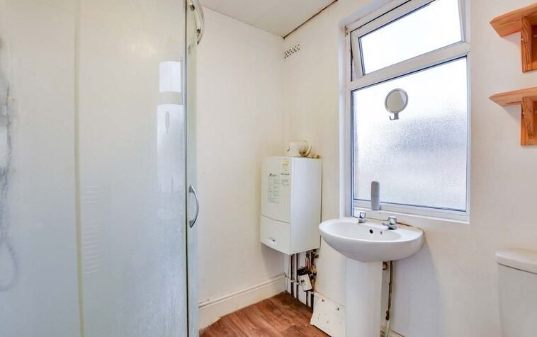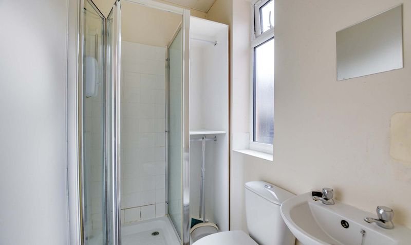 With double glazed window to the front elevation, shower cubicle, pedestal wash hand basin, low-level WC, wall mounted boiler.