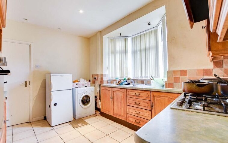 With double glazed bay window to the front elevation, one and a half bowl stainless steel sink and drainer unit with a range of wall and base units with work surface over, built-in oven and gas hob, filter hood over, plumbing for washing machine, tiled floor, internal door to annexe/ground floor bedroom.