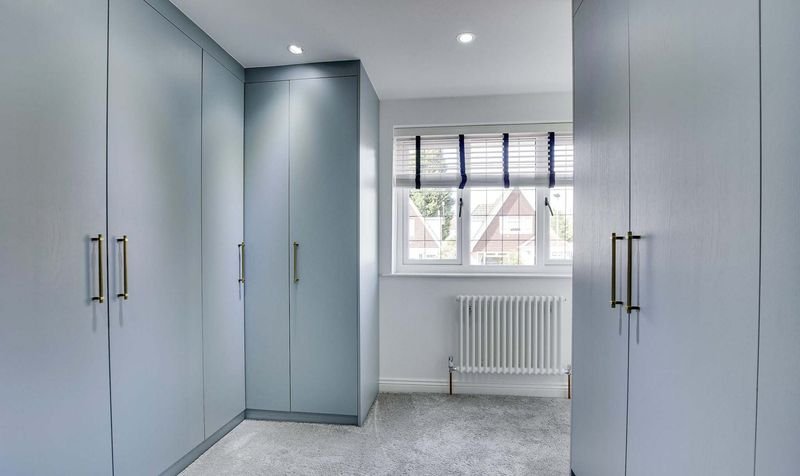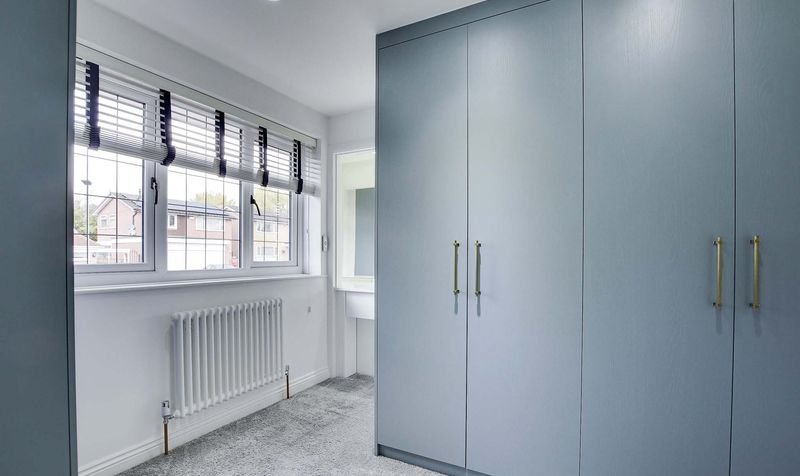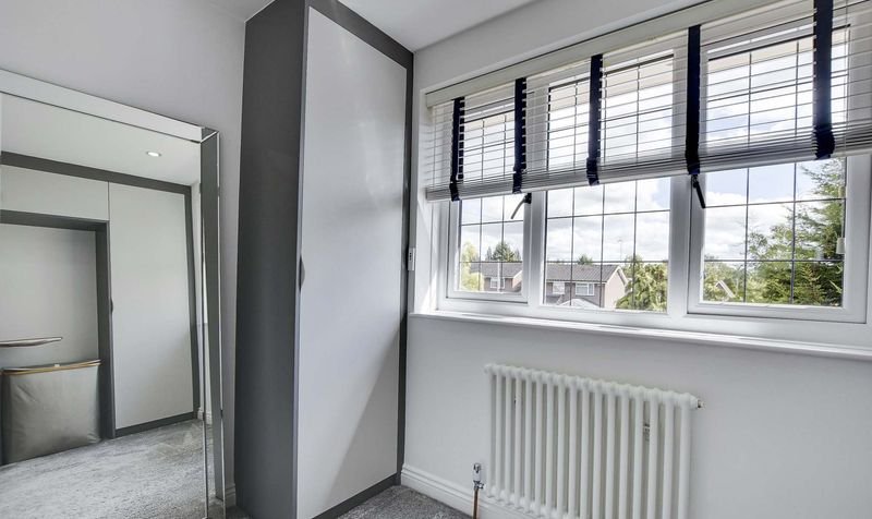 With a double-glazed window to the front elevation, fitted wardrobes, a built-in desk/vanity unit, radiator.