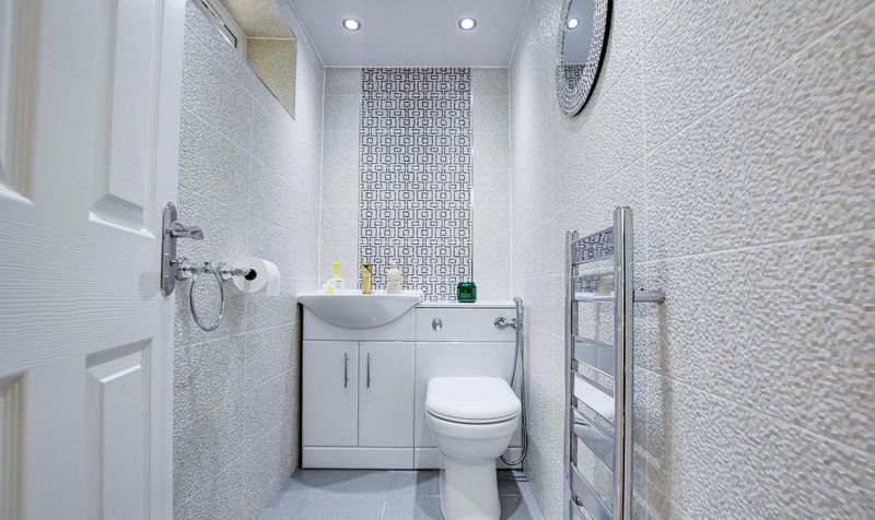 With a double-glazed window to the side elevation, tiled walls, tiled flooring, a wash hand basin with storage underneath, WC, radiator.