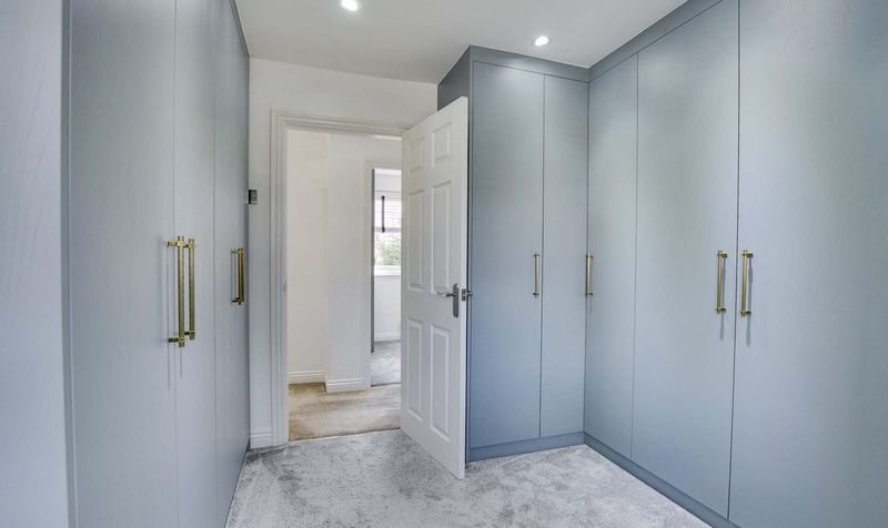 Upstairs, there are four bedrooms, three with fitted wardrobes, and a modern shower room with a walk-in double cubicle.