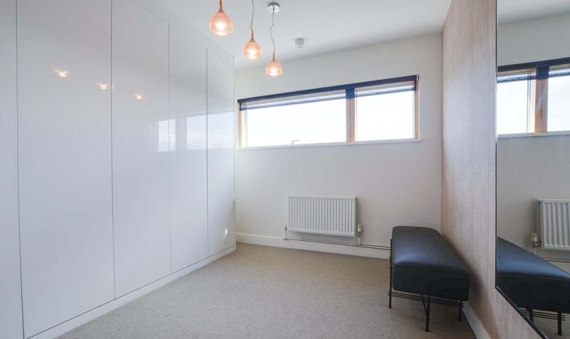 With Velfac double glazed window, bespoke Sharps built in wardrobes, Acupanel feature walls, TV point, radiator.
