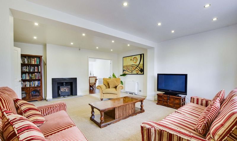 With double glazed bay window to the front elevation, carpet floor, wood burner with surround and hearth, radiator, double doors leading to the dining room.
