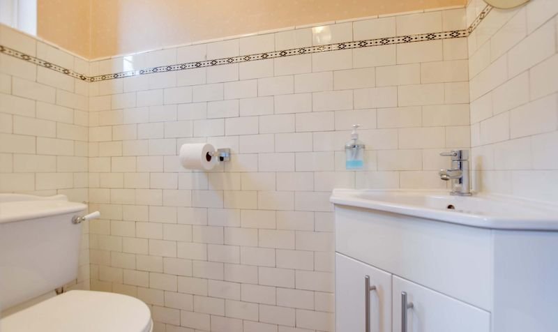 With double glazed window to the rear elevation, low-level WC, wash hand basin with storage below, original style part tiled walls.