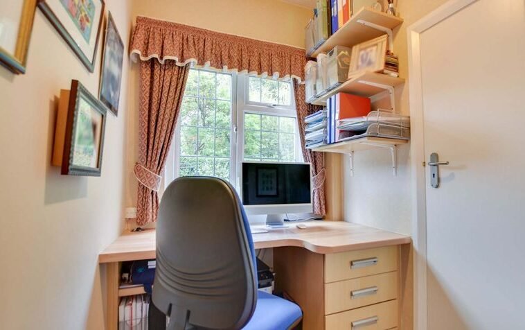 With double glazed window to the rear elevation, fitted desk with drawers, radiator.