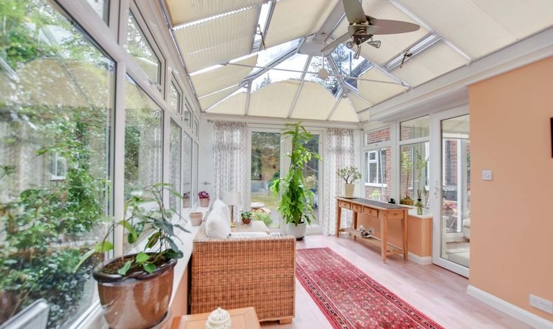 With double glazed French doors to rear garden, double glazed windows to the rear and side elevations, built-in blinds, ceiling fan.
