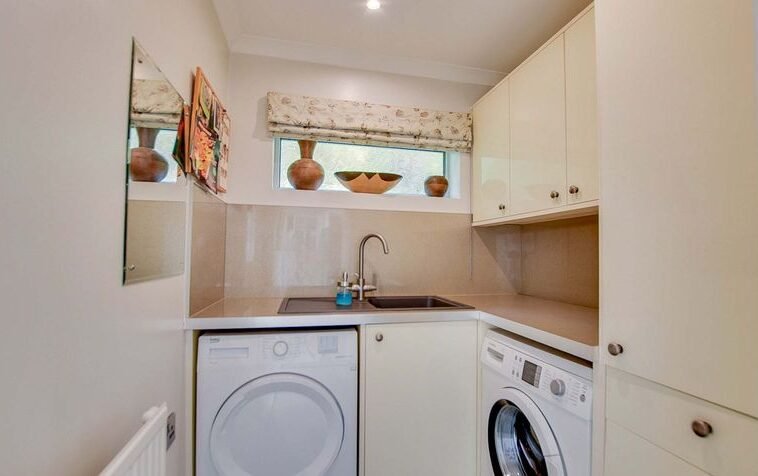 With double glazed window to the side elevation, sink and drainer unit, a range of wall and base units with granite work surface over, plumbing for washing machine, tiled floor with under floor heating, radiator.