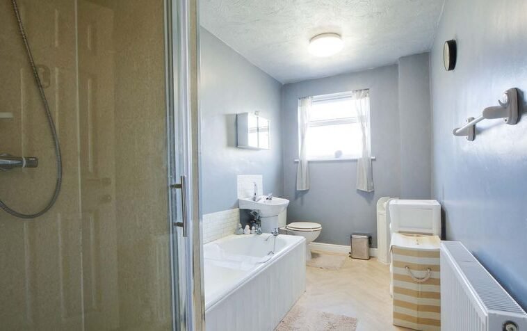 With double glazed window to the rear elevation, bath, separate shower cubicle, low-level WC, wash hand basin, part tiled walls, radiator.