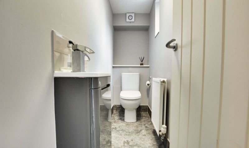 With double glazed window to the front elevation, tiled floor, low-level WC, wash hand basin with storage below, part tiled walls, radiator.