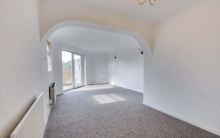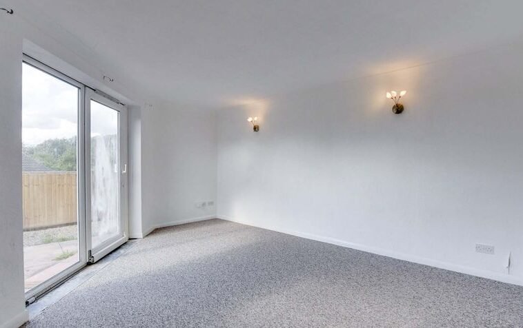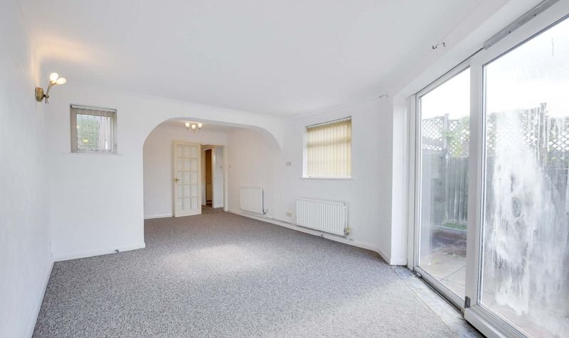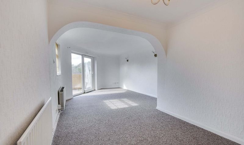 narrowing to 2.62 m, irregular shape. With double glazed sliding patio doors to the rear elevation, double glazed windows to the front and side elevations, carpet floor, two radiators.