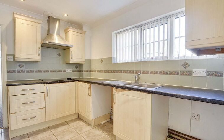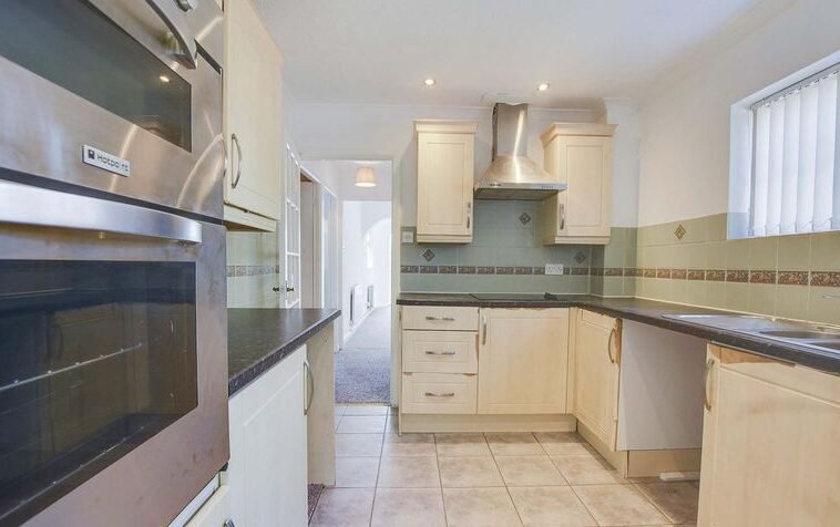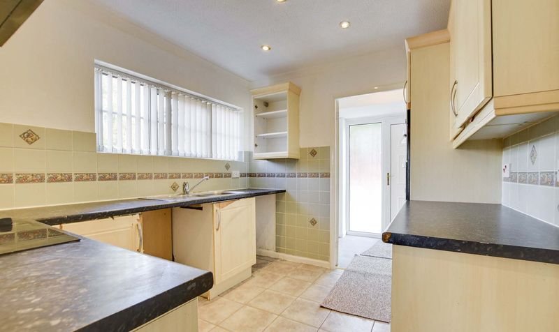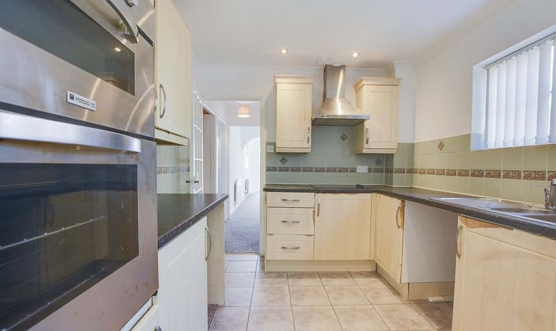 With double glazed window to the side elevation, tiled floor, wall and base units with work surface over, integrated double oven and hob, extractor fan, one and a half bowl sink and drainer, space for dishwasher, space for washing machine, space for under counter fridge, radiator.
