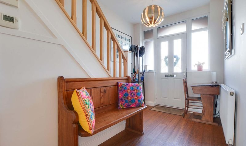 With double glazed door to the front elevation, wooden floor, stairs to first floor, radiator.
