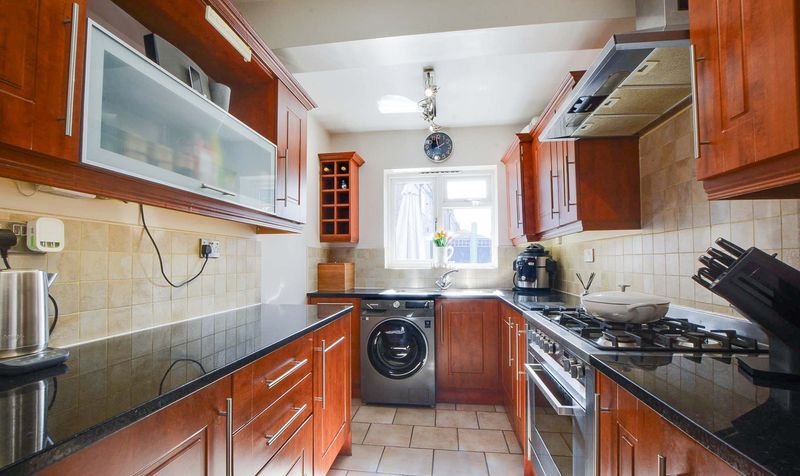 With double glazed window to the rear elevation, ceramic tiled floor, part tiled walls, a range of wall and base units with solid granite work surface over, stainless steel sink and drainer, gas cooker point, plumbing for washing machine, integrated dishwasher, integrated fridge, integrated freezer, double glazed door to the rear garden.